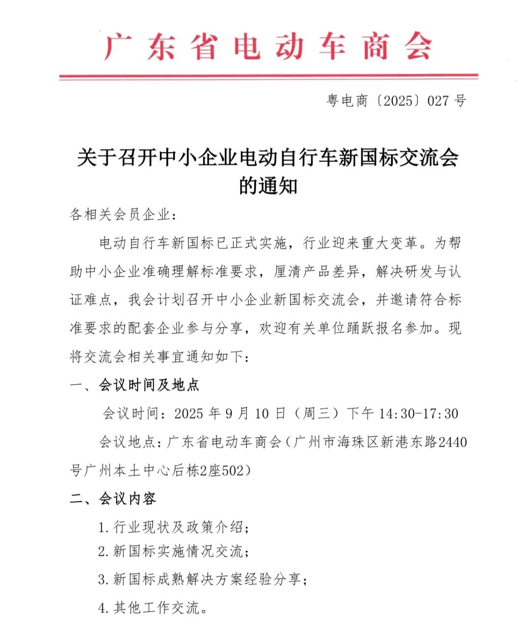关于召开2025广东省电动两轮车公共安全与高质量发展大会暨电动自行车新国标技术交流会的通知