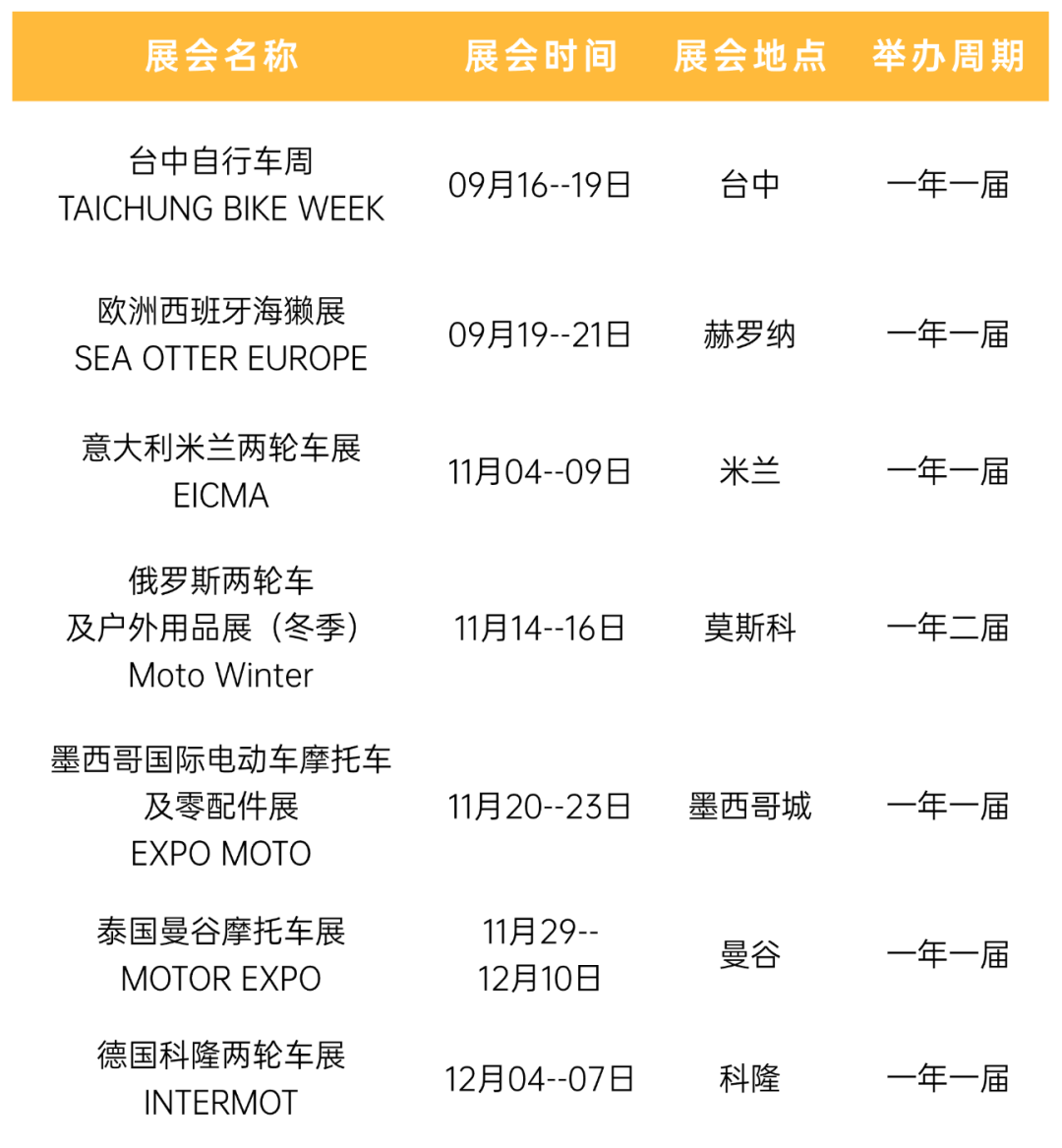 乘风启航·共拓全球!为助力电动车企业拓展全球市场,洞悉全球电动车发展趋势,广东省电动车商会拟组织企业参与2025年下半年国际两轮车展会系列商务考察活动。本次活动将聚焦意大利、泰国两大核心展会,同时梳理下半年全球重点展会资源,为企业出海拓市搭建优质对接平台。