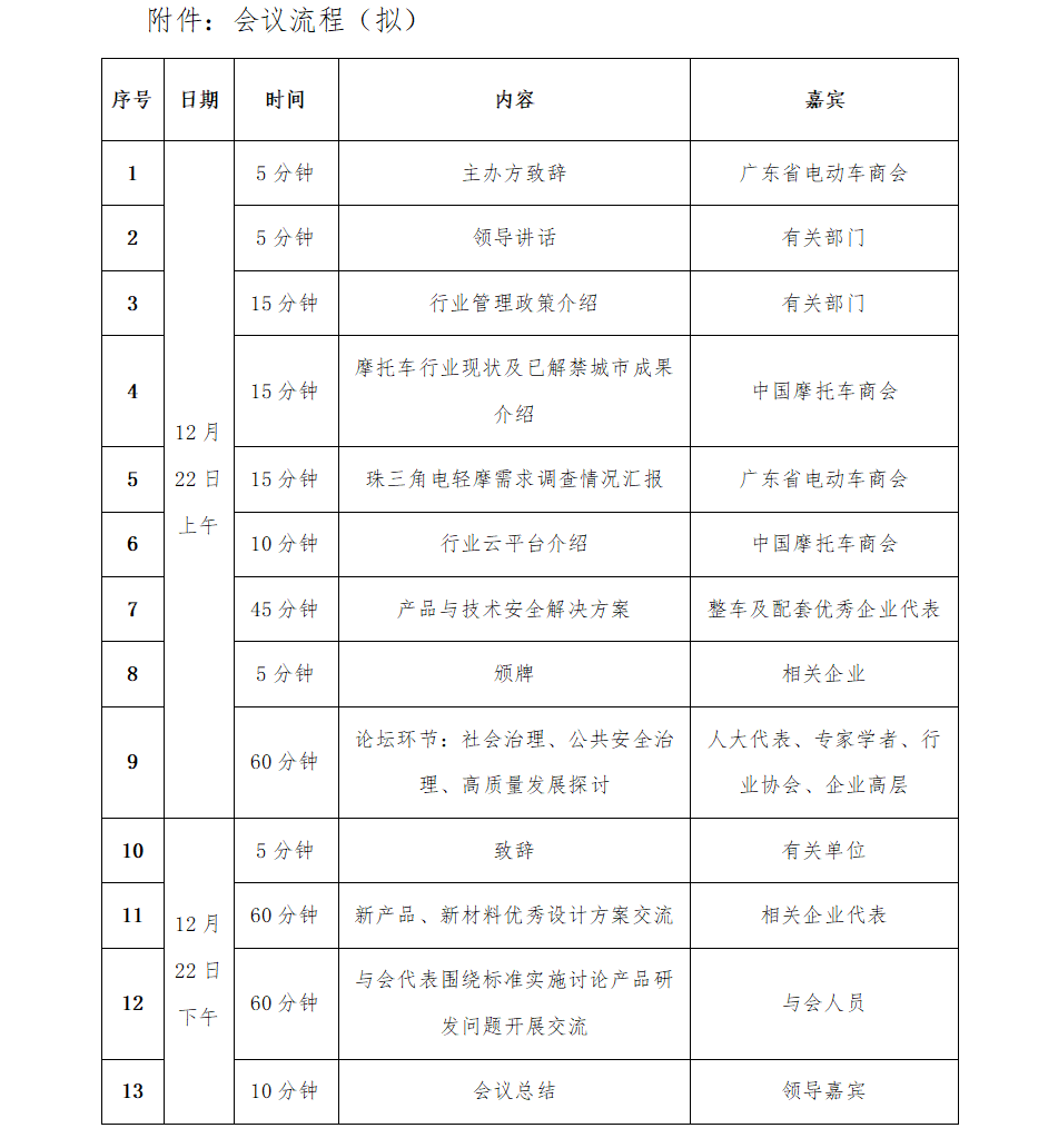 为贯彻落实新国标,探索两轮车公共安全管理新路径,进一步促进产业转型升级,同时深入探讨电动轻便摩托车等新产品在外卖、快递等领域的可行性,我会定于2025年12月22日在广州举办“2025广东省电动两轮车公共安全与高质量发展大会暨电动自行车新国标技术交流会”。本次大会由广州集泰化工股份有限公司承办,旨在搭建行业交流与资源对接平台,研究新国标下的技术升级、风险防控策略及行业发展趋势,共同拓展市场新机遇。现将有关事项通知如下: